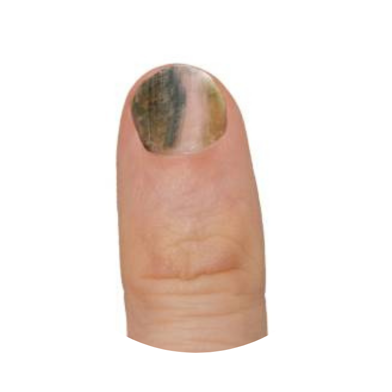Nigrotriquia: se reconoce por el color negro de la mancha, se puede trabajar si el cliente no presenta dolor en la uña.