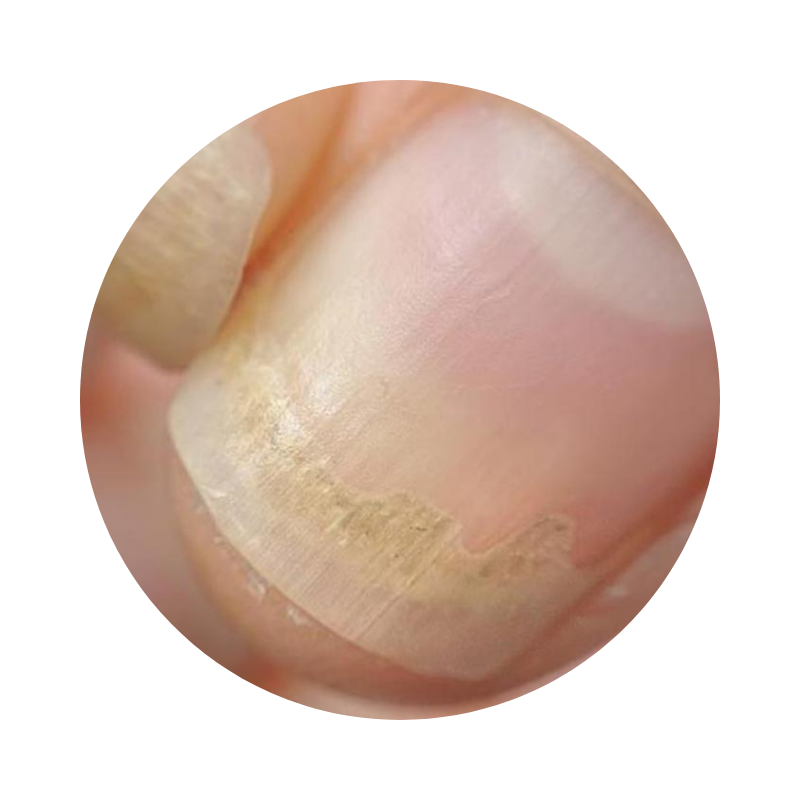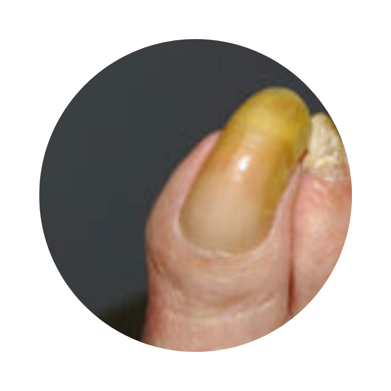Psoriasis unguicular: de color rojizo o amarillo intenso, se puede trabajar sobre estas uñas siempre y cuando un dermatólogo certifique que es causada por psoriasis y no por hongos.