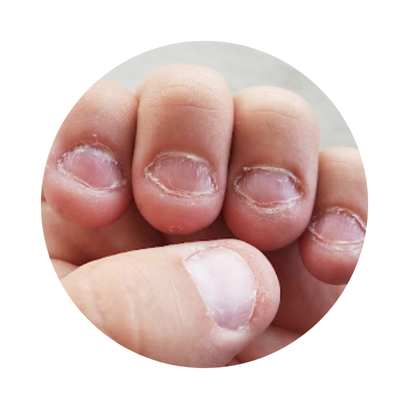 Onicofagia: si por el nombre no la reconocés, te contamos que es el acto de comerse las uñas. Se conocen por no tener el borde libre y tener quebraduras. Se pueden realizar trabajos siempre y cuando el cliente no presente incomodidad.