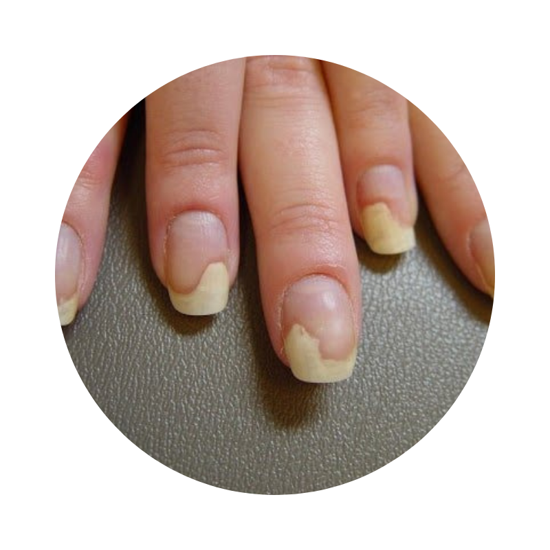 Factores externos, como detergentes agresivos, los hongos o la humedad y factores internos como la genética, hormonas o la alimentación, pueden generar distintos tipos de alteraciones. A continuación te mostramos algunas de ellas y si podés realizar trabajos de manicuría sobre ellas.