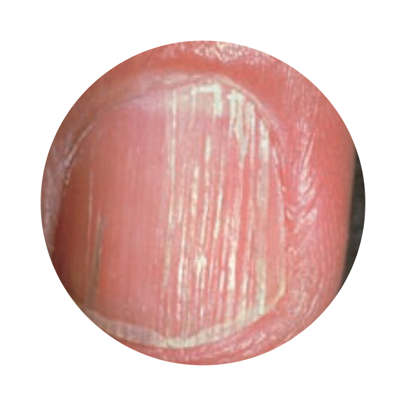 Onicorrexis: es una uña que presenta astillas de manera vertical y se puede deber a factores hormonales, genéticos o productos químicos. Se puede trabajar siempre y cuando el cliente no presente un estado muy extremo ni dolores.