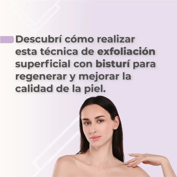 En estas clases grabadas (que podrás ver las veces que quieras durante 60 días desde el momento de la inscripción) el Dermaplaning. Es una exfoliación superficial de la piel que se realiza con bisturí para mejorar la calidad de la piel y genera nuevas células, otorgando homogeneidad, suavidad y luminosidad al rostro. Asimismo, permite una mejor absorción de cremas y máscaras hidratantes.