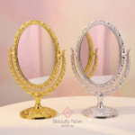 Combiná tu espejo con una lámpara de tocador o organizador de cosméticos para crear un entorno de belleza completo.