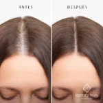 - Sostenerlo a una distancia adecuada del cuero cabelludo, aproximadamente 3-5 cm. Pulverizar suavemente el polvo sobre las áreas donde se desea cubrir la pérdida de cabello o aumentar el volumen. Trabajar en secciones pequeñas para una aplicación más uniforme.